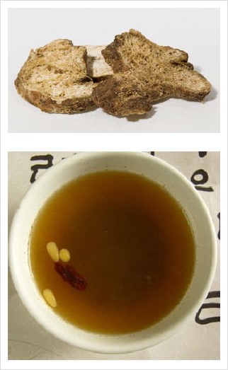 말린 삽주 뿌리 약 20g 정도 물 2L 정도 넣어 약한 불에 달여서 먹으면 됩니다.